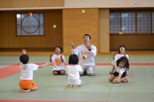 からだ遊びクラブ[つぼみ]は2~5歳の対象の親子参加型クラブで、約45分からだを使って色々な動きを行います。そのあとボールを使って色々なことに緒戦しました。